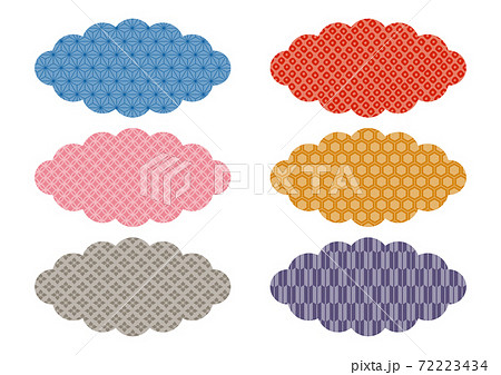 和柄の雲 イラスト素材 カラフル 麻の葉 七宝 花菱 鹿の子絞り 亀甲 矢絣 のイラスト素材